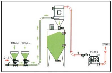 氣力輸送的主要特點是輸送量大,輸送距離長,輸送速度較高;能在一處裝料,然后在多處卸料。